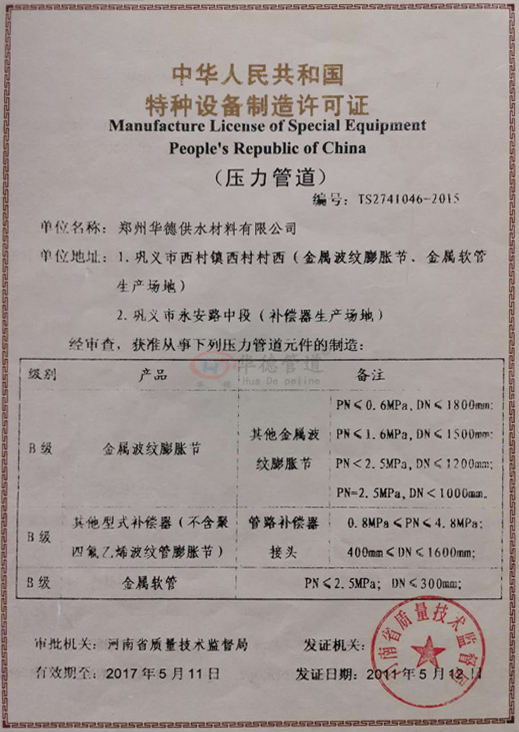 鄭州華德供水材料有限公司是集研發(fā)、生產(chǎn)、銷售于一體的閥門管道配件的生產(chǎn)型企業(yè),具有十年多的設(shè)計管道產(chǎn)品經(jīng)驗 和較強的管道配套設(shè)備的制造能力。主導(dǎo)產(chǎn)品包括伸縮器、管道補償接頭、煙、風(fēng)、煤粉管道補償器(膨脹節(jié))、汽、水管道補償器(膨脹節(jié))、防水套管、橡膠接頭、波紋補償器(膨脹節(jié))、金屬軟管、鋼制拍門、風(fēng)門、閘門等系列產(chǎn)品。產(chǎn)品種類涵蓋50多個余品種。