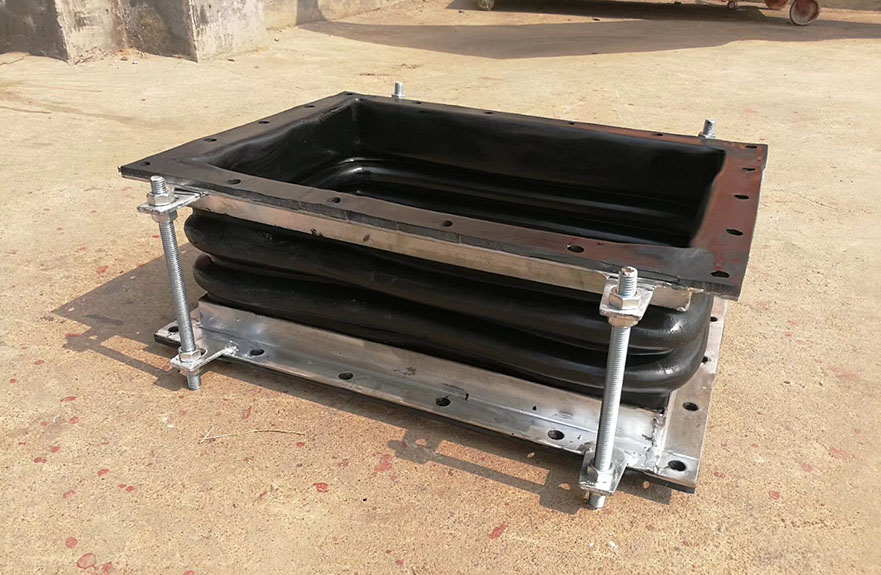 矩形風道橡膠補償器由橡膠和纖維織物復合材料、鋼制法蘭、套筒、保溫隔熱材料組成,主要用于各種風機、風管之間的柔性連接,其功能是減震、降噪、密封、耐介質、便于位移和安裝,是環境保護領域中一種極為理想的減震、降噪、消煙除塵的最佳配套件。