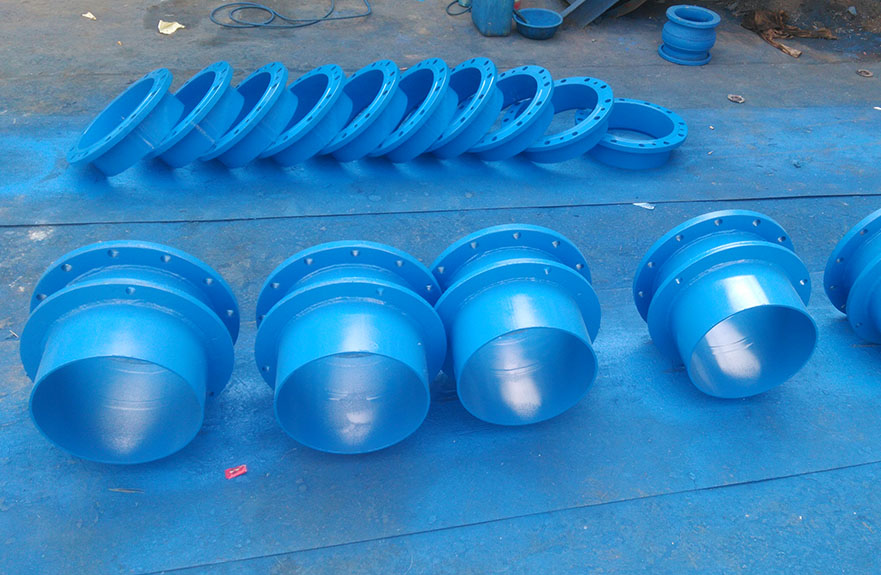 2、該產品采用金屬鑄造或焊接組成,松套部位選用梯形橡膠密封圈,在壓蓋和螺栓的作用下利用橡膠壓縮彈性變形原理。迫使密封圈變形于接頭本體伸縮管外壁之間進行靜密封。金屬和密封圈嚴格按使用性能及用戶要求選用。材質外部涂裝高強度防腐漆料,各部連接螺栓為高強度碳鋼或不銹鋼制作。